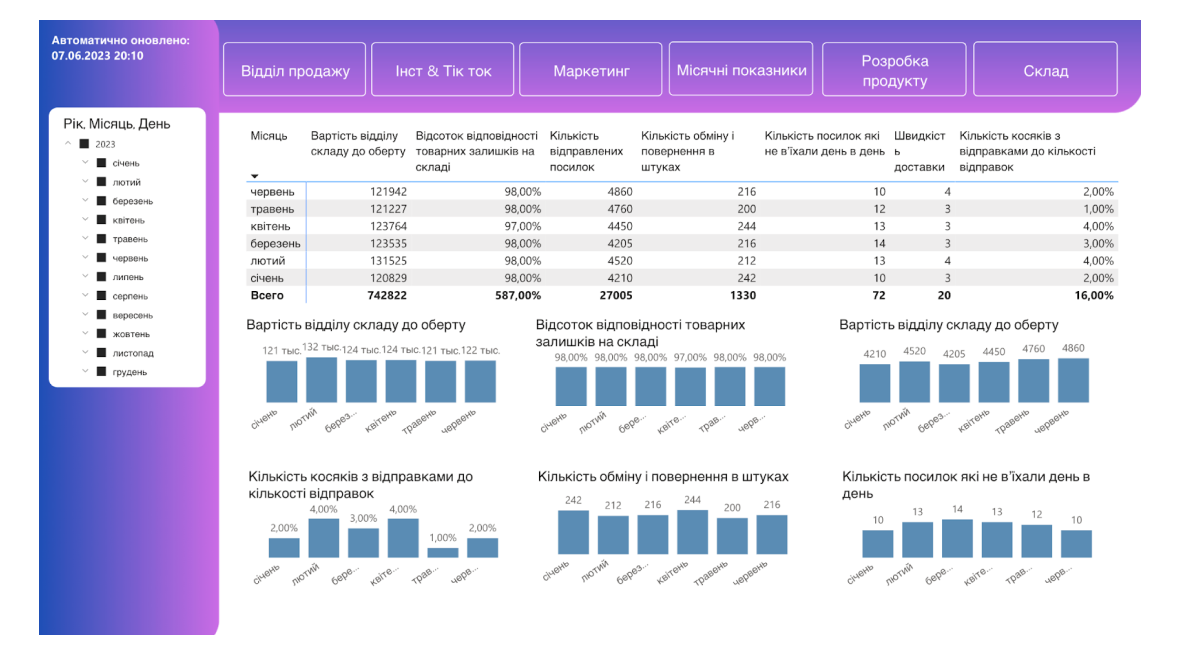 - Витрати на відділ зберігання відносно загального обороту